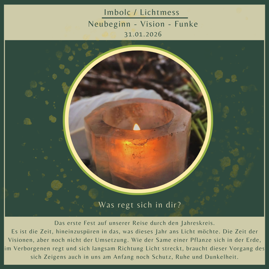 Die Jahreskreisfeste bilden die Herzstücke im Jahreslauf. Dazwischen begleiten wir euch mit Online-Impulsen wie beispielsweise Einstimmungen zur Zeitqualität, Naturgängen und Impulsen um das Erlebte zu vertiefen und mit der Natur in Verbindung zu gehen.