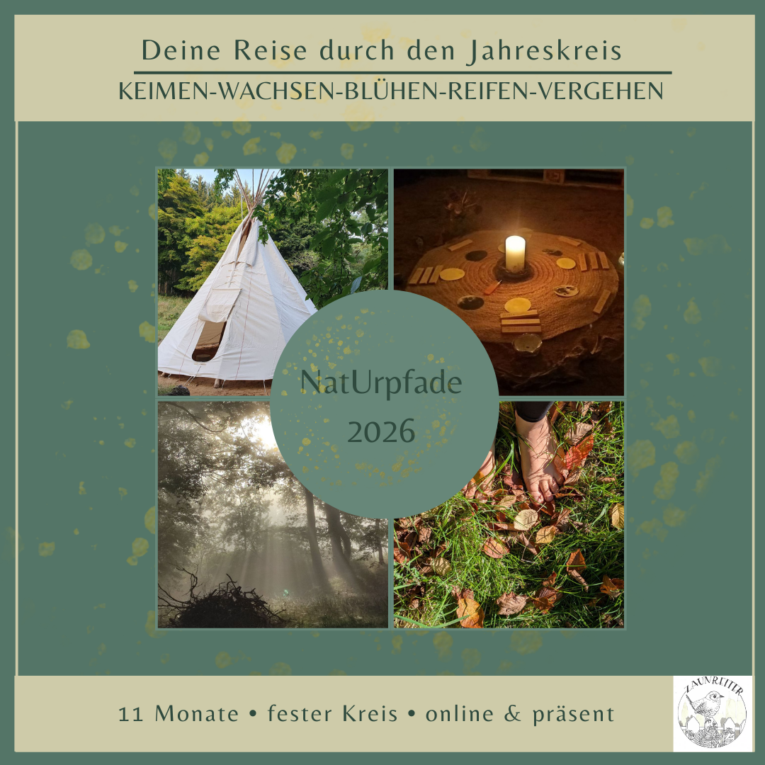 Gemeinsam begeben wir uns auf unbekannte und doch für mindestens einen Teil in uns, ganz vertraute Pfade. In Gemeinschaft und doch jede*r individuell reisen wir 11 Monate lang durch das Jahresrad, erfahren, eingebunden in die großen Rhythmen des Lebens die Veränderungen der Natur – Keimen – Wachsen, Blühen, Reifen und Vergehen – als Spiegelbilder innerer Wachstums- und Veränderungs-prozesse in uns selbst. Wir werden Pflanzen, Bäumen und Tieren begegnen und mit ihnen in Beziehung treten .Das bedeutet, die Natur ist keinesfalls schmückendes Beiwerk oder dienendes Objekt. In sinnlicher Beziehung mit ihr werden erleben, dass alles miteinander verwoben ist und wir Teil eines riesigen, lebendigen Netzes sind.